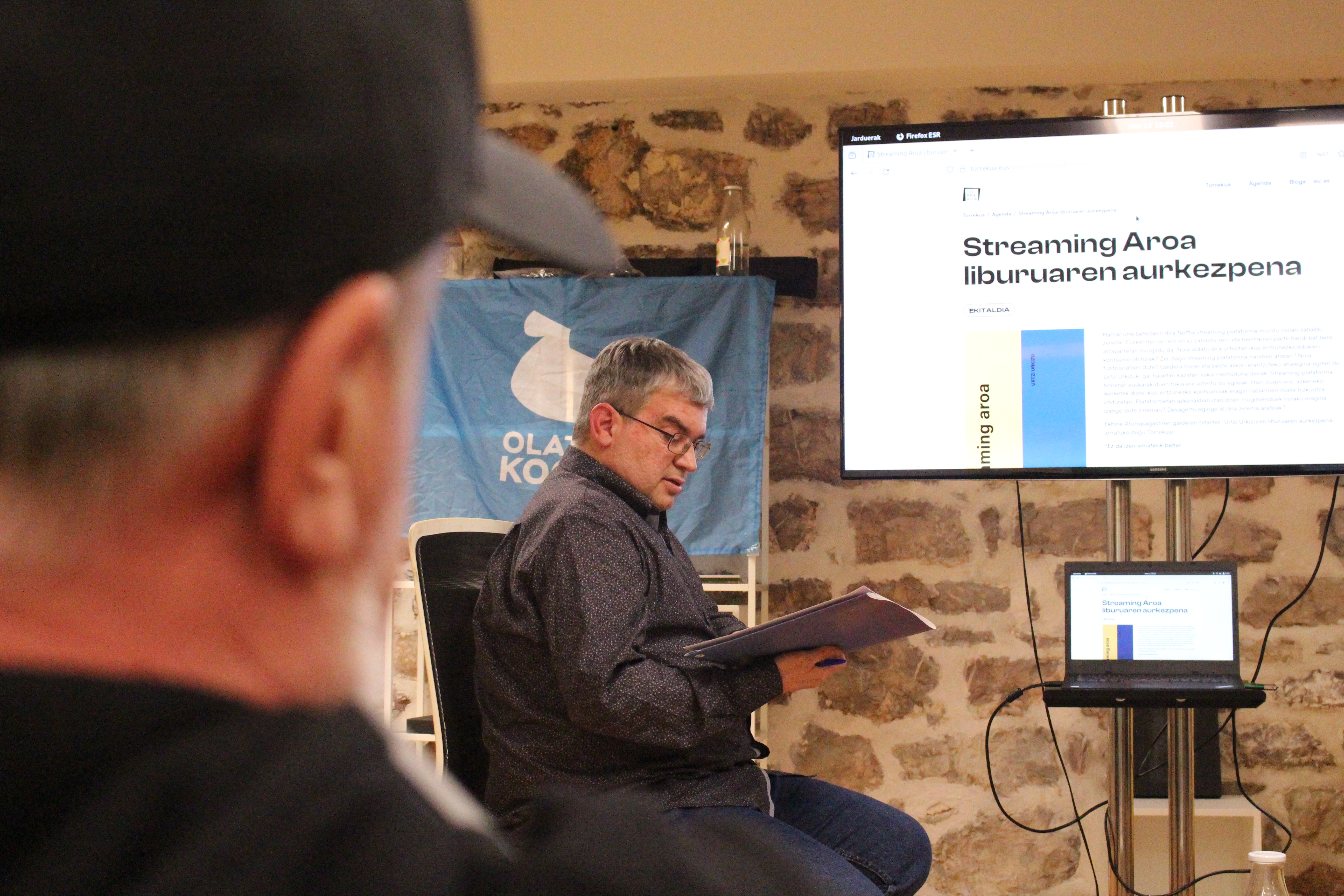Martxoaren 13an Urtzi Urkizuk idatzitako "Streaming aroa" liburuaren aurkezpena egin zen Torrekuan, Ekhiñe Atorrasagastiren gidaritzapean. Giro atsegina sortu zen eta gogoetarako gai asko landu ziren. Hala ere, guztiak ikus-entzunezko plataformek gure gizartean, eta bereziki euskal gizartean, duten eraginaren ingurukoak izan ziren.